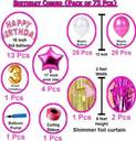 What will you get : 13 PCS Pink Happy Birthday Letter foil balloon + 50 PCS Pink and White metallic balloons + 4 PCS Pink Star Foil balloon + 1 PC Ribbon + 1 PC Balloon air pump + 2 PC Pink curtain + 1 PC Gold curtain +1 PC 3 Numeric Letter foil balloon for birthday decoration. Everyone in the family lov C Balloon air pump + 1 PC 3 Letter Foil balloon + 1 PC Gold curtain + 2 PC Pink curtain +1 PC Ribbon for birthday decoration . Everyone in the family loves the decoration.