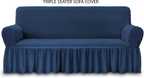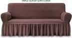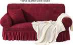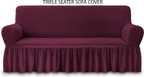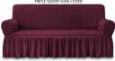 Magic Cover Polyester 3 Seater Sofa Striped Cover (Pack of 1 Wine)