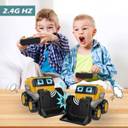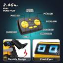 [Kids Robot Toy] A bulldozer robot toy with powerful 2.4GHZ remote control system. When the switch is turned on, the robot will flash its eyes and make funny sounds. The engineering vehicle can move forward/backward, turning and stunts, dynamic music and stunt performances in one-key mode can make the operation easier and have more fun for children.