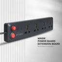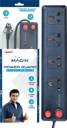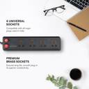 | Key Features | - 4 Universal Sockets: Compatible with Indian and international plugs — perfect for TVs, laptops, mobile chargers, kitchen appliances & more., Surge Protection: Built-in protection against voltage fluctuations, keeping your devices safe and secure., 5 Metre Heavy-Duty Cord: Ensures convenient placement and reliable power supply anywhere in your home or workspace, Master Switch & LED Indicator: Easy power control for all connected devices at once, plus clear ON/OFF status visibility., Premium Build Quality: Durable body, fire-retardant material, and elegant design make it ideal for homes, offices, shops, or study rooms., Wide Application: Supports multiple gadgets like desktops, printers, routers, LED TVs, and kitchen appliances.