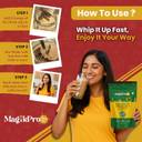 "MagikPro SuperHealth – Choco-Coffee Flavour, the ultimate healthy drink that combines the boldness of coffee with the richness of cocoa and the nourishment of ancient superfoods. This unique blend is naturally sweetened with sun-dried black dates, providing a deliciously indulgent experience without any added sugar or jaggery. Crafted for those who seek a healthier way to energize, MagikPro SuperHealth supports mental alertness, physical vitality, and daily wellness. Each serving is a nutritional powerhouse, featuring brain-boosting almonds and walnuts, heart-healthy pumpkin and watermelon seeds, and gut-friendly oats and makhana. The inclusion of ragi and rajgira flour ensures you receive essential nutrients for strong bones and blood. With the added benefits of adaptogens like ashwagandha and shatavari, this drink helps manage stress and supports hormonal balance, making it perfect for anyone navigating a busy lifestyle. Whether you’re powering through a busy day, preparing for exams, or simply looking for a nutritious treat, MagikPro SuperHealth – Dark Coffee Flavour is your go-to choice for natural energy and nourishment.