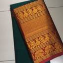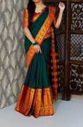 Magneitta Striped Kanjivaram Tissue, Cotton Silk Saree (Dark Green)