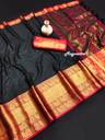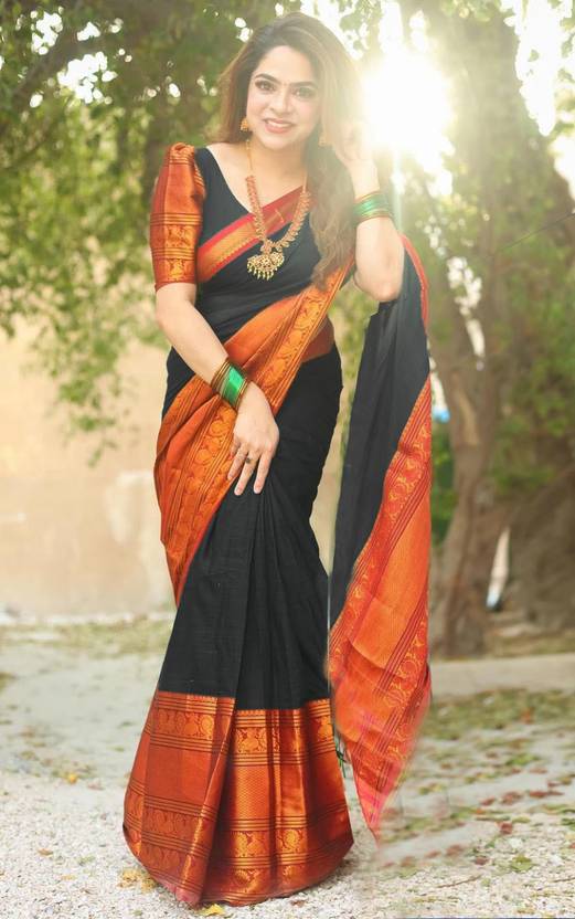 Magneitta Woven Kanjivaram Cotton Silk, Pure Silk Saree (Black)