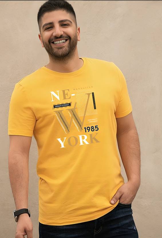 Magneto Printed Men Round Neck Yellow T-Shirt