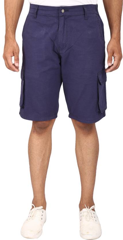 Self Design Men Blue Cargo Shorts