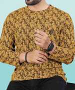 Upgrade your casual style with this trendy full sleeve T-shirt designed for modern men. Crafted from premium quality polyester fabric, this T-shirt ensures a lightweight feel, moisture-wicking comfort, and lasting durability. The mustard base with a black camouflage-inspired pixel print gives it a bold and rugged look, perfect for both everyday wear and casual outings.
