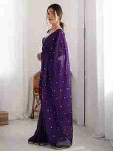 Looootnest Embellished Bollywood Georgette Saree Purple