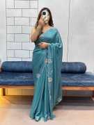 fency frendy satin silk heavy sirocki work lace border and blouse, small border sirocki work sare, trending sirocki worek sare with blouse, Fancy saree and blouse, Bollywood saree, Designer georgette saree for party wear"
