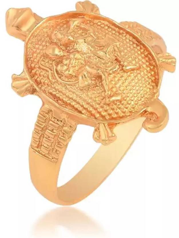 Mahakaal Jewels Gold Plated CZ Studded Designer Hanuman Bajrangbali on Tortoise Finger Ring Brass Ring