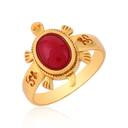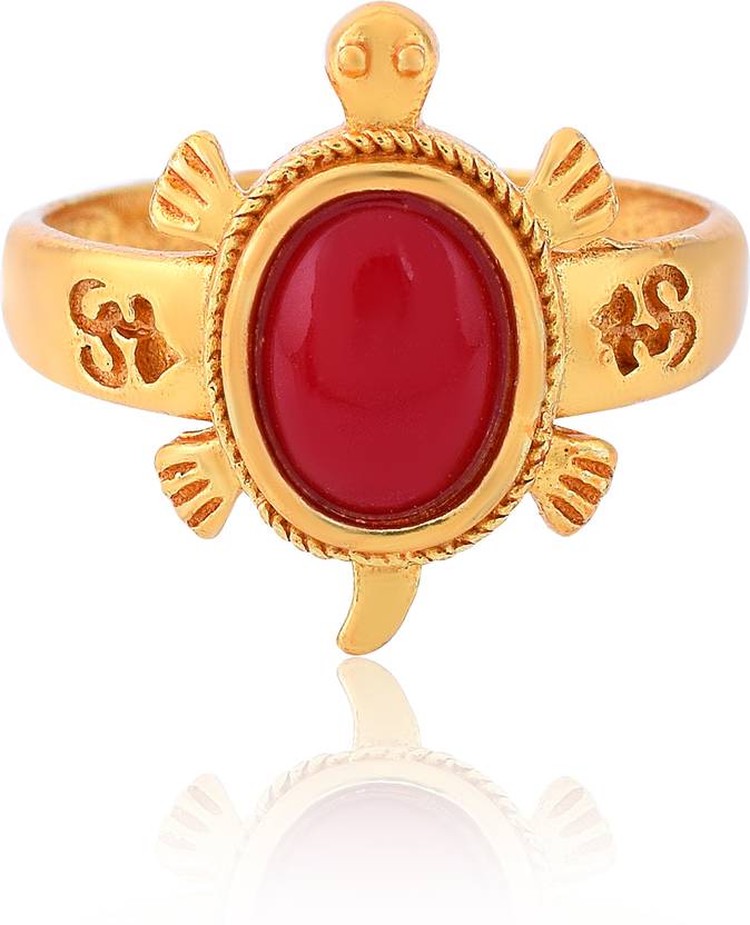 Mahakaal Jewels Gold Plated Red Stone Tortoise Turtle Vastu Feng Shui Kachua Finger Ring Brass Gold Plated Ring