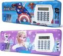 vvn Avenger & Frozen Calculator Pencil Box Combo Cartoon Printed Art Trandy Magnetic Dual Sharpener for Girls & Boys School Cartoon Printed Art Plastic Pencil Boxes (Set of 2, Multicolor)