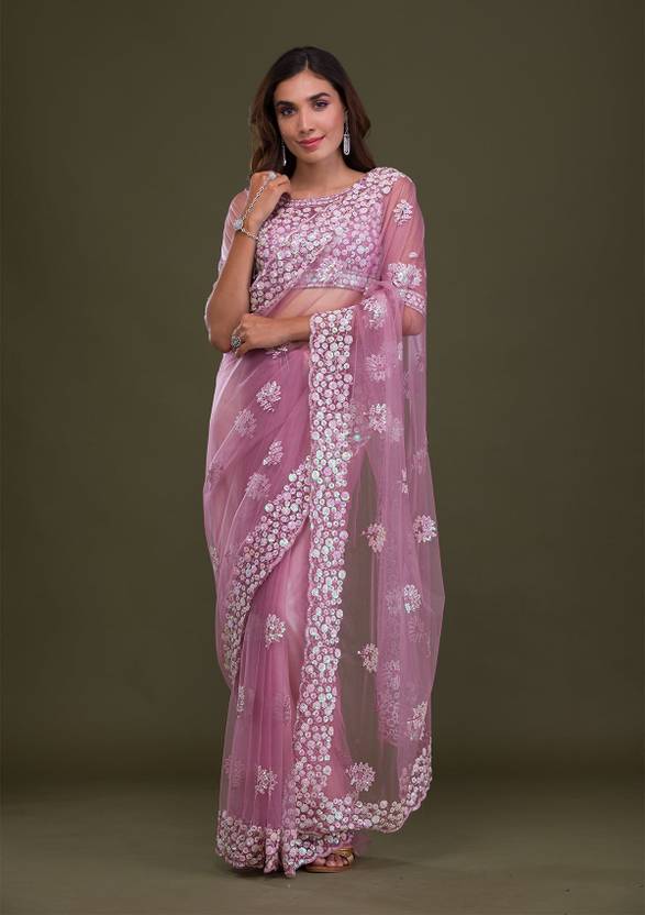 MAHAKALI CLOTHING Embroidered Bollywood Net Saree (Pink)