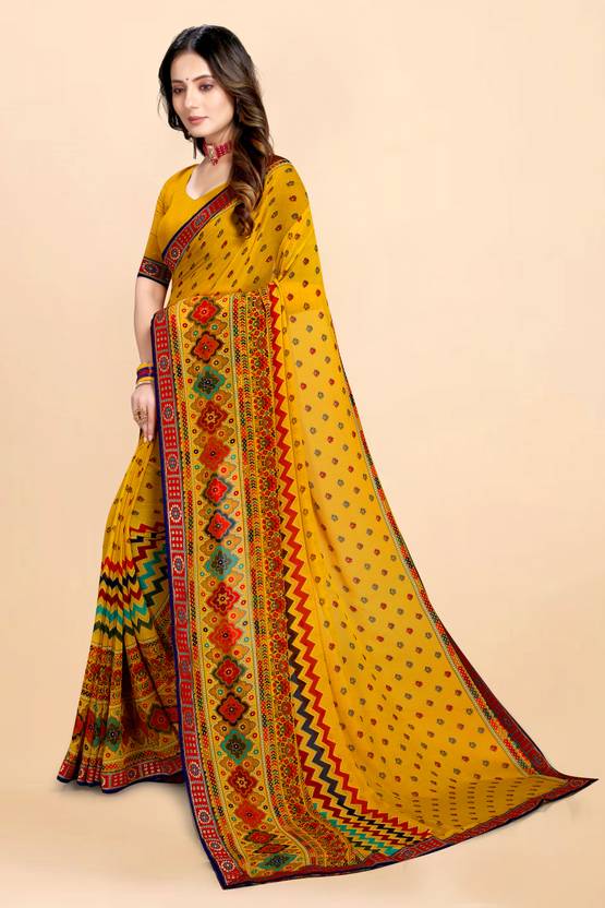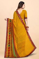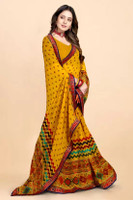 Crafted from georgette chiffon fabric, this saree can offer you lightweight wear that can add to its comfort. The fabric can provide you with a soft and breathable feel, which can make it suitable for extended wear. With a smooth texture and fluid movement, it can allow easy styling while maintaining an elegant silhouette. Whether you prefer structured attire or a relaxed fit, this fabric can enhance the overall look of the saree, which can help make it an adaptable choice for various occasions.