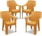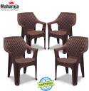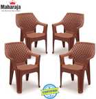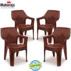 MAHARAJA Alpha for Home, Office | Comfortable | Arm Rest | Bearing Capacity up to 200Kg Plastic Outdoor Chair (Brown, Set of 4, Pre-assembled)
