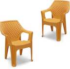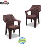 MAHARAJA Alpha for Home, Office | Comfortable | Arm Rest | Bearing Capacity up to 200Kg Plastic Outdoor Chair (Teakwood, Set of 2, Pre-assembled)