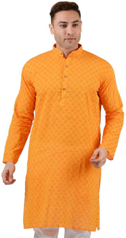Mens Kurta in 100% Pure Cotton for Daily and Festive Wear in Orange