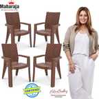 MAHARAJA Plastic chair for Home, Living Room | Arm Rest | Bearing Capacity up to 200Kg Plastic Outdoor Chair (Teak Wood, Set of 4, Pre-assembled)