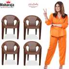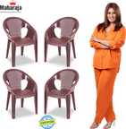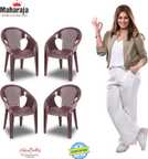 MAHARAJA Surya602 Chairs for Home, Office| Comfortable | Plastic Stackable Armchairs Plastic Outdoor Chair (Brown, Set of 4, Pre-assembled)