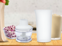 This hand blender from Maharaja Whiteline comes with a 500-ml chopper and an 800-ml beaker. The chopper lets you perfectly chop veggies and dry fruits, so you can prepare salads and more. The beaker is useful when you want to blend chopped fruits into smoothies.