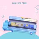 Maharani Train Metal pencil box with double side open and weels Panda art Art Metal Pencil Box (Set of 1, White, Blue)