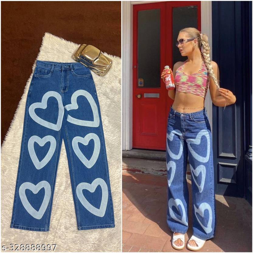 Denim Heart Shape Jeans, Denim Digital Jeans, Denim Jeans, Jeans, Women Jeans, Women Digital Denim Jeans