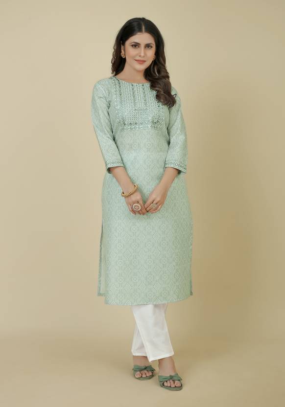 Pack of 2 Women Bandhani Cotton Blend Straight Kurta (Light Green, White)