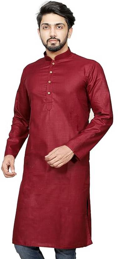 MAHEAR Men Solid Cotton Blend Straight Kurta (Maroon)