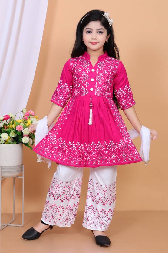 Maheera Fashion Baby Girls Festive & Party Churidar and Dupatta Set (Pink Pack of 1)