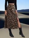 Maheshvi Casual Polyester Blend Elasticated High Waist Side Slit Flared Leopard Print Skirt(31"Inches)