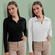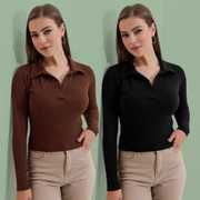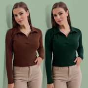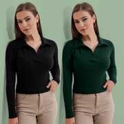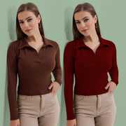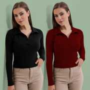 Casual Polyester Blend Collared Neck And Long Sleeves Stylish Pack Of 2 Tops For Womans