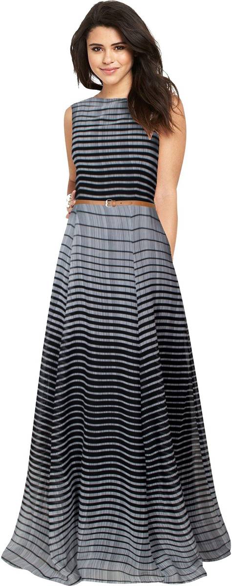 Striped Georgette Stitched Flared/A-line Gown (Black)