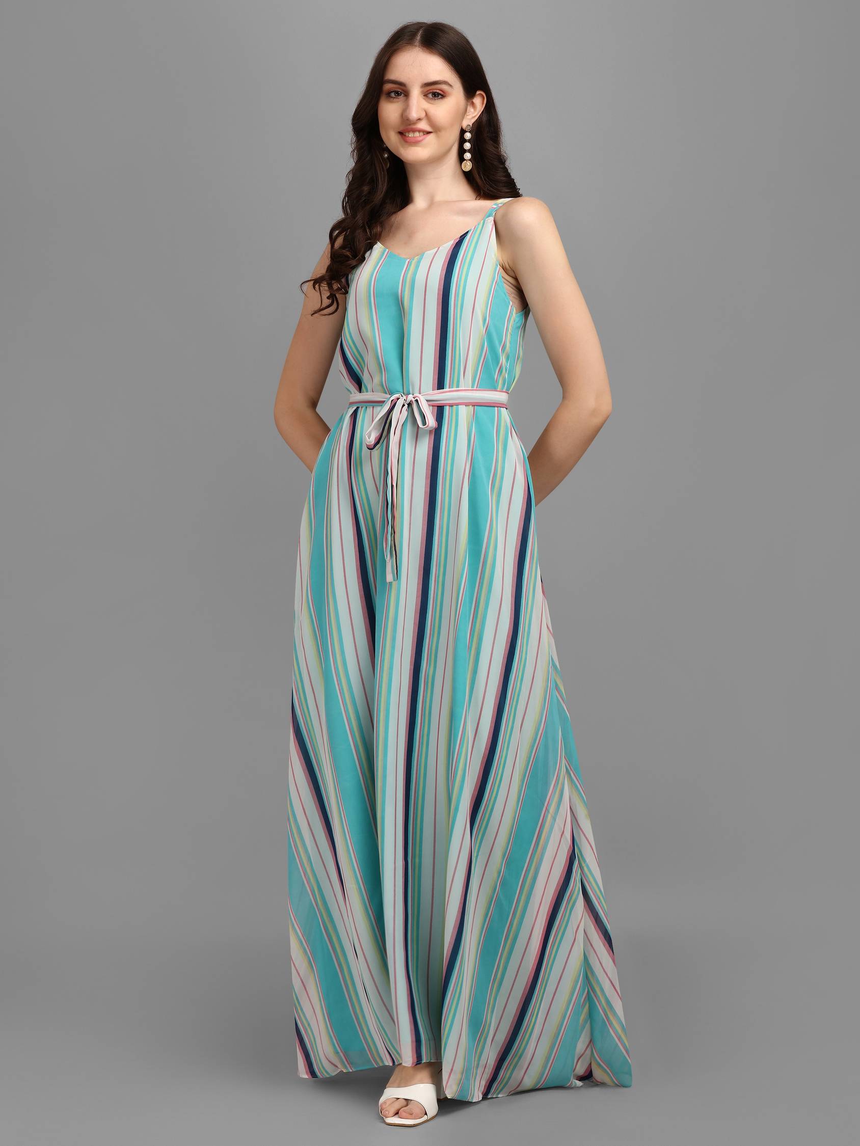 Georgette Heavy Gown Round-Neck Sleeveless Lining-American Crepe (56"Inches)
