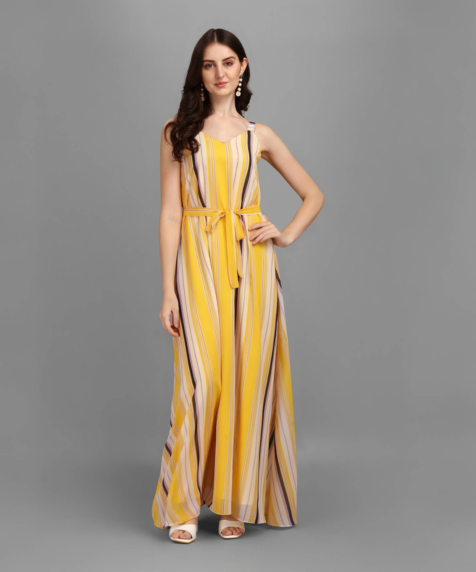 Striped Georgette Stitched Flared/A-line Gown (Black)