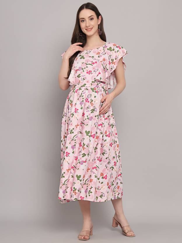 Dream Beauty Fashion Rayon Midi Length Pink Feeding Dress (50"Inches)