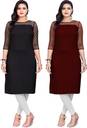 Pack of 2 Women Self Design Crepe Straight Kurta (Orange)
