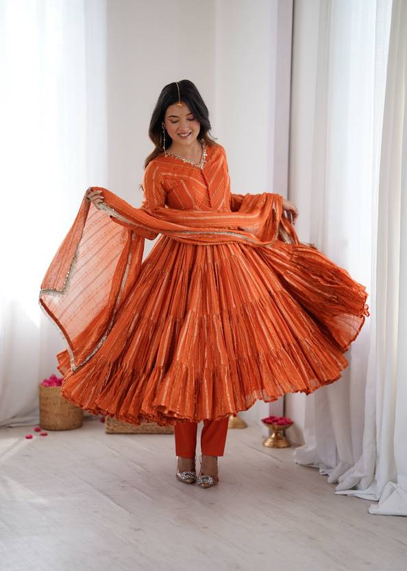 Self Design Art Silk Stitched Flared/A-line Gown (Orange)