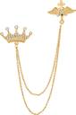 mahi Fashionable Double Chain Crown Wing Brooch Lapel Pin Brooch (Gold)