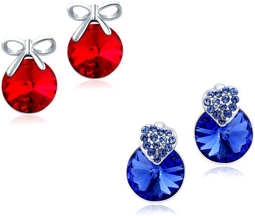 Mahi Combo of two Earring studs with Rhodium plating and made with Swarovski Elements. Top Earring Size : 16mm x 12mm ; Bottom Earring Size : 15mm x 12mm