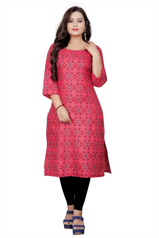 MAHIRA CREATION Women Bandhani Cotton Blend Straight Kurta (Pink)