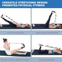 This yoga stretching strap is designed to help alleviate pain associated with various conditions, including heel spurs, Achilles tendonitis, tight calf muscles, lower back pain, foot injuries, tight hamstrings, and plantar fasciitis. By incorporating stretching exercises with the strap into a routine, users can target and relieve discomfort in specific areas of the body.