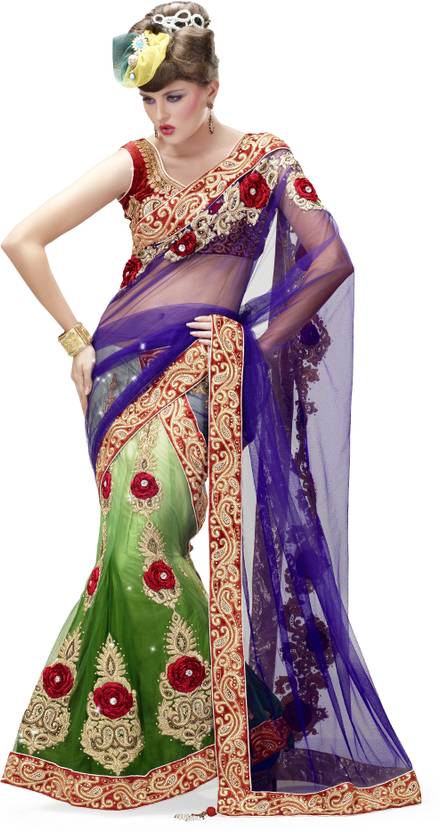 Lehenga Saree Crafted with sequins, velvet Flowers & resham work gives royal work with booti border.