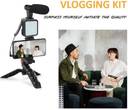 Best Video Vlogging Kit with Microphone Light Tripod Phone Holder Remote Control for Tiktok Youtube Live Recording Tripod Kit Multi-use photography accessories .Use as a camera stand tripod, table top tripod, camera handle, camera grip, to easily maneuver the camera when taking on-the-go video and action shots.Mini tripod designed to support video and still shots while keeping your camera steady. Compact design provides an easy way to take it everywhere you go.Vlogging Kit for Video Making with Bluetooth Remote, Mic, Mini Tripod Stand, LED Light & Phone Holder Clip for Making Videos, Recording YouTube Videos. This product is operated by batteries. Please insert the batteries in light and mic before starting the kit