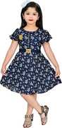 Girls Above Knee Casual Dress (Blue, Short Sleeve)