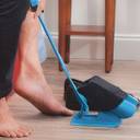 The Sock Slider System consists of the sock cradle and a long handle that will help you slide your socks on without bending over, twisting or turning. The handle will also help you take your socks off when you're done wearing them and help you hold your shoes in place while you put them on. This system works with most types of socks, regardless of whether you choose dress socks, casual ones, athletic ones or even compression socks.