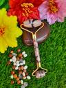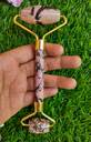Maitri Export me-Rhodonite-Roller Smooth Facial Roller & Massager Natural Massage Jade Stone for Face Eye Neck Foot Massage Tool (Rhodonite) Massager (Pink, Brown)
