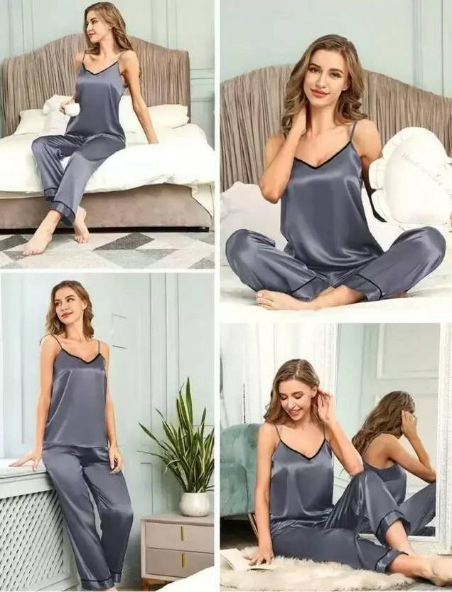 Women night suits pajama with top creating comfortable fashionable home clothing for women girls night suit make sure skin friendly nature of every piece of unique satin fabric women night suit night dresses 2 pic pack of one set