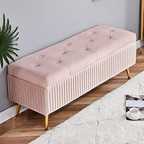 MAJESTIC MART Modern Velvet Storage Bench 2 Seater Sofa Settee For Living Room/Bedroom/Office Solid Wood Settee (Finish Color -Pink, Pre-assembled)