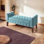 MAJESTIC MART Premium Tufted Settee with Storage Bench 2 Seater Sofa for Living Room Bedroom Solid Wood Settee (Finish Color -Blue, Pre-assembled)