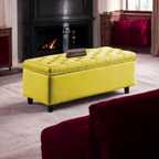 MAJESTIC MART Premium Wooden Fabric Ottoman Bench for Seating & Storage for Home & Office Solid Wood Settee (Finish Color -Yellow, Pre-assembled)