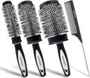 MAJESTIQUE Ion Round Brush Set for Blow Drying and tail comb(Pack of 4)